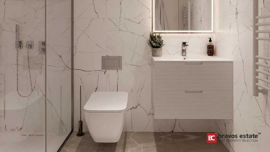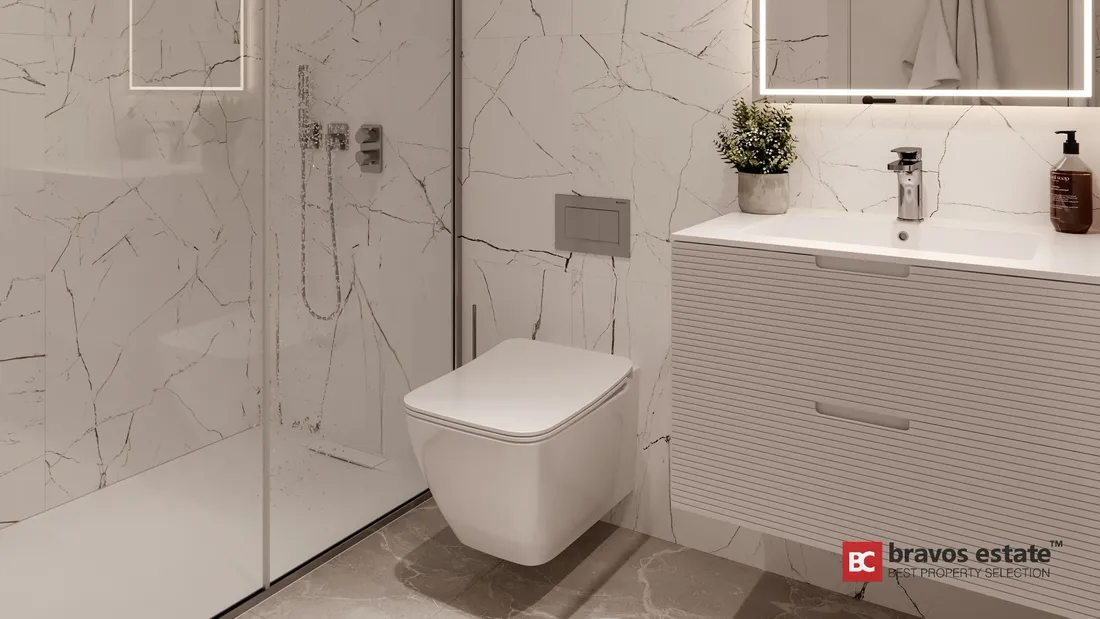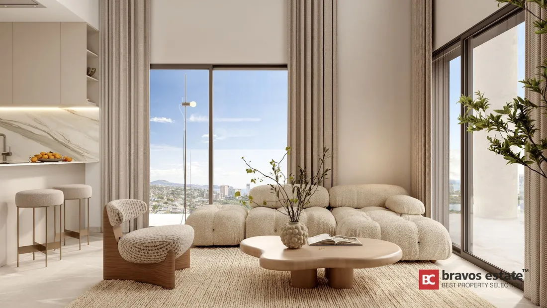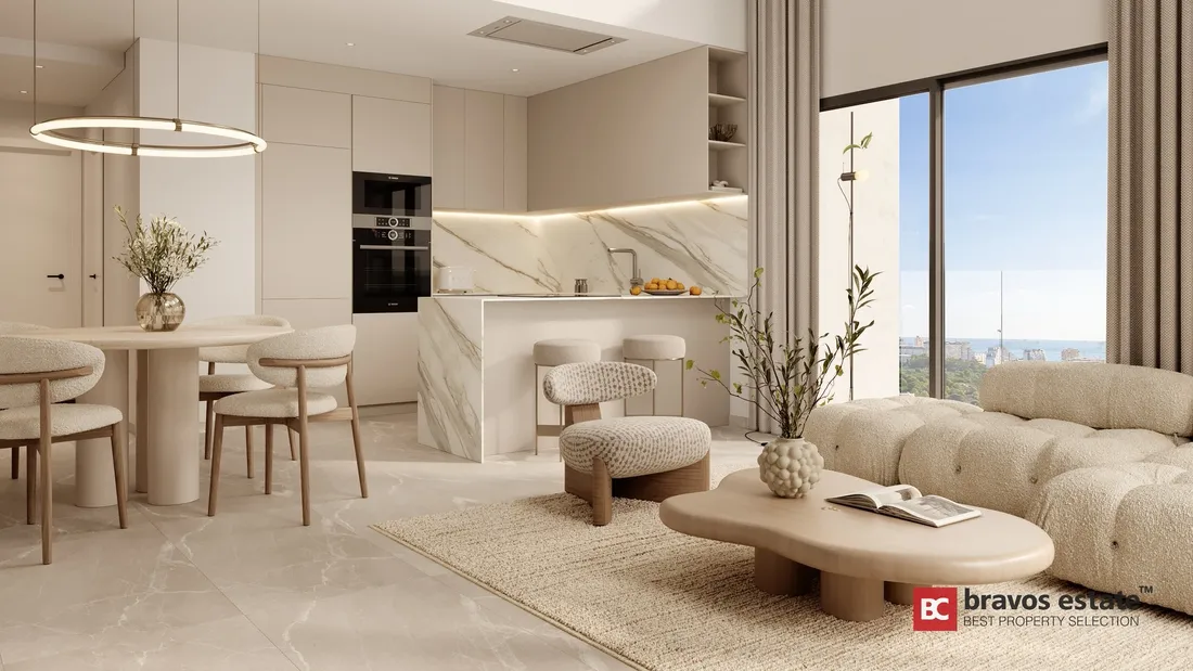 The design features a functional open-plan layout with spacious interiors and large terraces that extend toward the horizon, inviting natural light into every space. Some residences offer double lighting in the living area, enhancing brightness and creating an exceptional sense of openness. Contemporary materials, elegant lines, and thoughtful detailing define each corner, ensuring timeless style and everyday comfort.