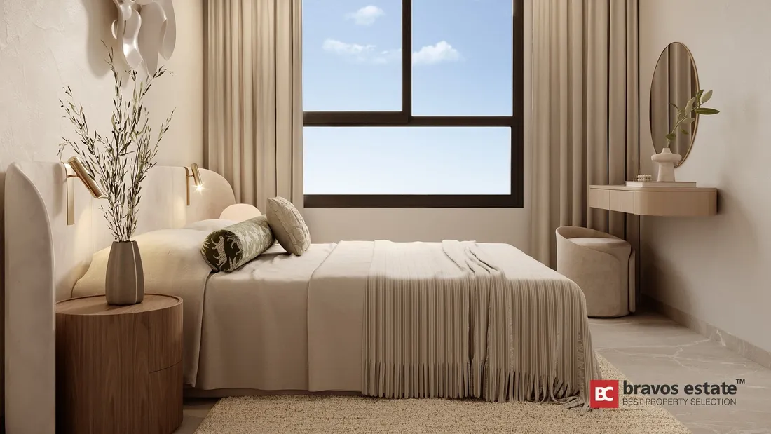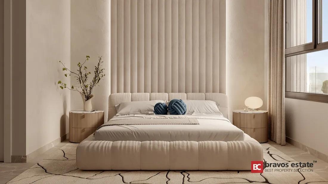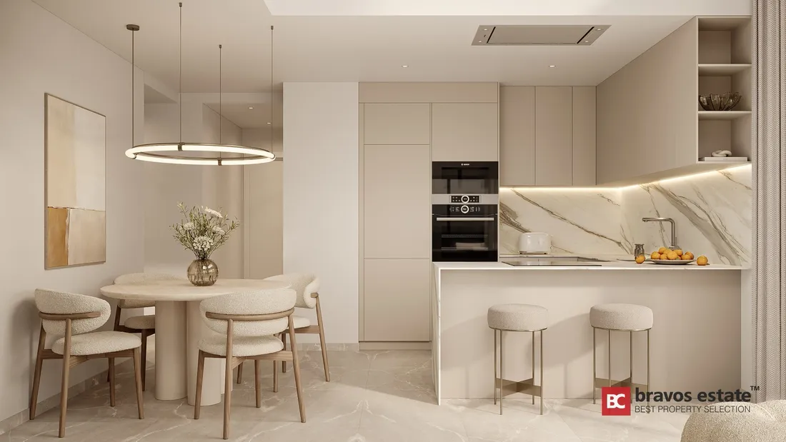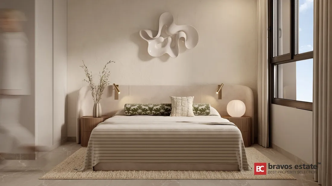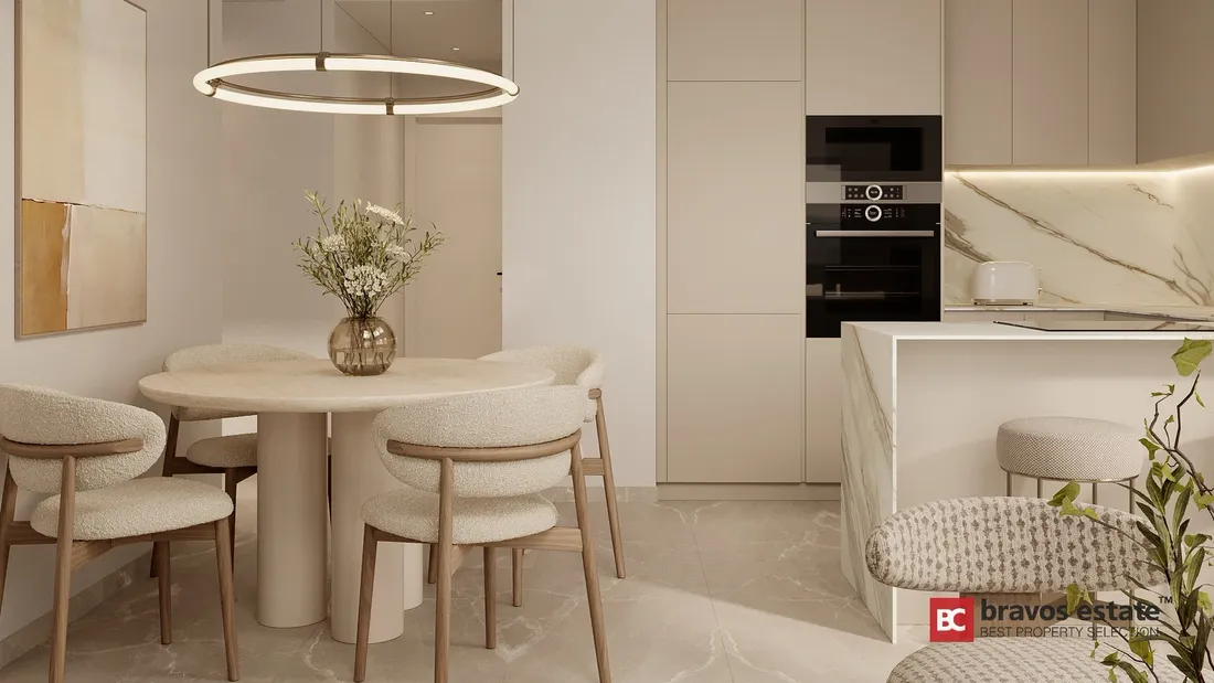 Residents enjoy access to exclusive communal amenities that elevate wellbeing and leisure. The complex includes an infinity swimming pool with a sun terrace and pool bar, landscaped gardens, relaxation zones, a fully equipped gym, yoga and wellness areas, paddle courts, a calisthenics space, coworking and social club, and a dedicated children’s playground and private kids’ club.